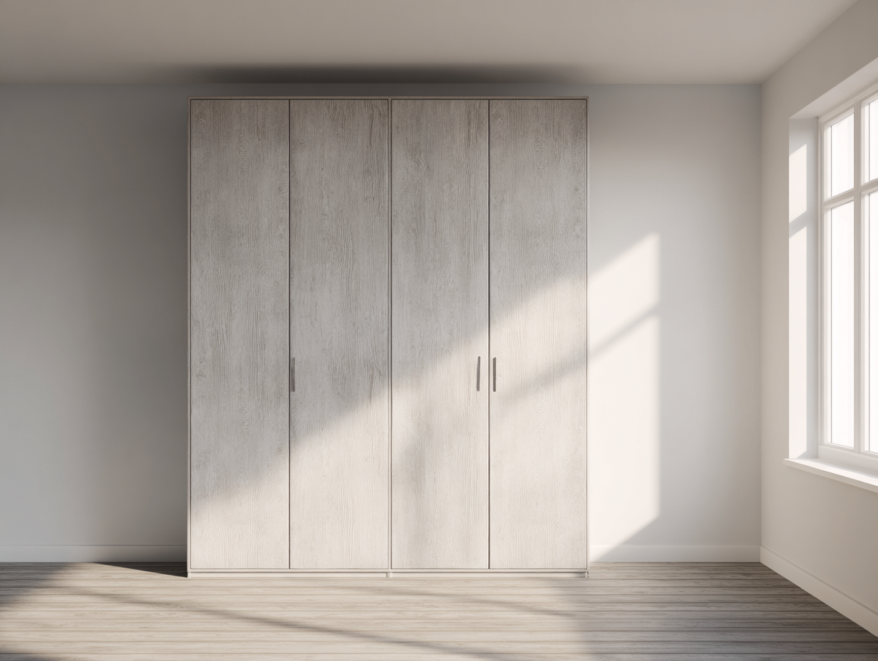 La configurazione a quattro ante offre ampio spazio interno per appendere e organizzare capi di abbigliamento. Il design verticale permette di sfruttare efficacemente lo spazio della stanza mantenendo un aspetto ordinato. Lo stile minimalista lo rende facilmente abbinabile a mobili moderni o contemporanei.